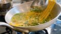 - パスタを茹でる: 塩分1.5%のしっかりとした塩味の湯でパスタを茹でます。
