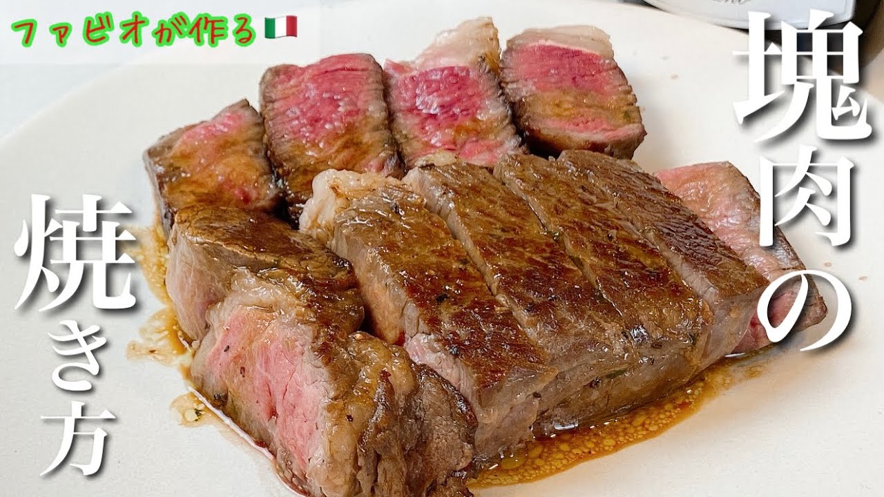 ファビオシェフによる、分厚い塊肉(牛ロース)をフライパン一つでプロ級に焼き上げるための「究極の火入れ」テクニックを公開した永久保存版のレシピです。イタリア語でステーキを意味する「ビステッカ」を、フライパン(パデッラ)で焼くことから「ビステッカ・イン・パデッラ」と称されています。このメソッドは、焼く前の脱水処理から、低温でのじっくりとした火入れ、そしてハーブとバターを使った「アロゼ(油かけ)」による香りの追加、さらに最後の強火での焼き目付けまで、ステーキを最高の状態に仕上げるための全ての工程が詳細に解説されています。合わせるソースは、濃口醤油とエクストラバージンオリーブオイルに酸味を効かせたシンプルなドレッシングで、脂身のあるロース肉との相性が抜群の本格ステーキレシピです。